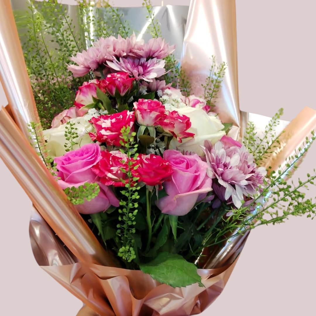 Simple Congratulation Bouquet – Mixed Flowers in Luxury Golden Wrap